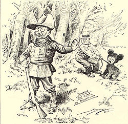 By the way in his bid re-election Teddy Roosevelt used a mascot, the teddy bear; he was very bear like with a snout and beady eyes.