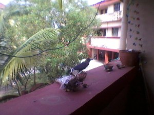 We now shifted to Bamboli, and the place is lovely with many birds, right from Bhardwaj to peacock but guess what no sparrows it’s the crow that rules the roost. I had the habit of placing a spoon full of rice for the sparrow I started it and crows came to peck it.
