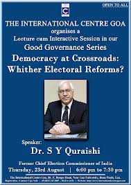 The International centre at Goa has started a series of public education campaign. The have their priorities right they are talking to literate uneducated. This time round it was a talk by Dr.S.Y.Quereshi the former chief of election commission, the session was chaired by Dr.M.Madassir the current chief of election commission for Goa.