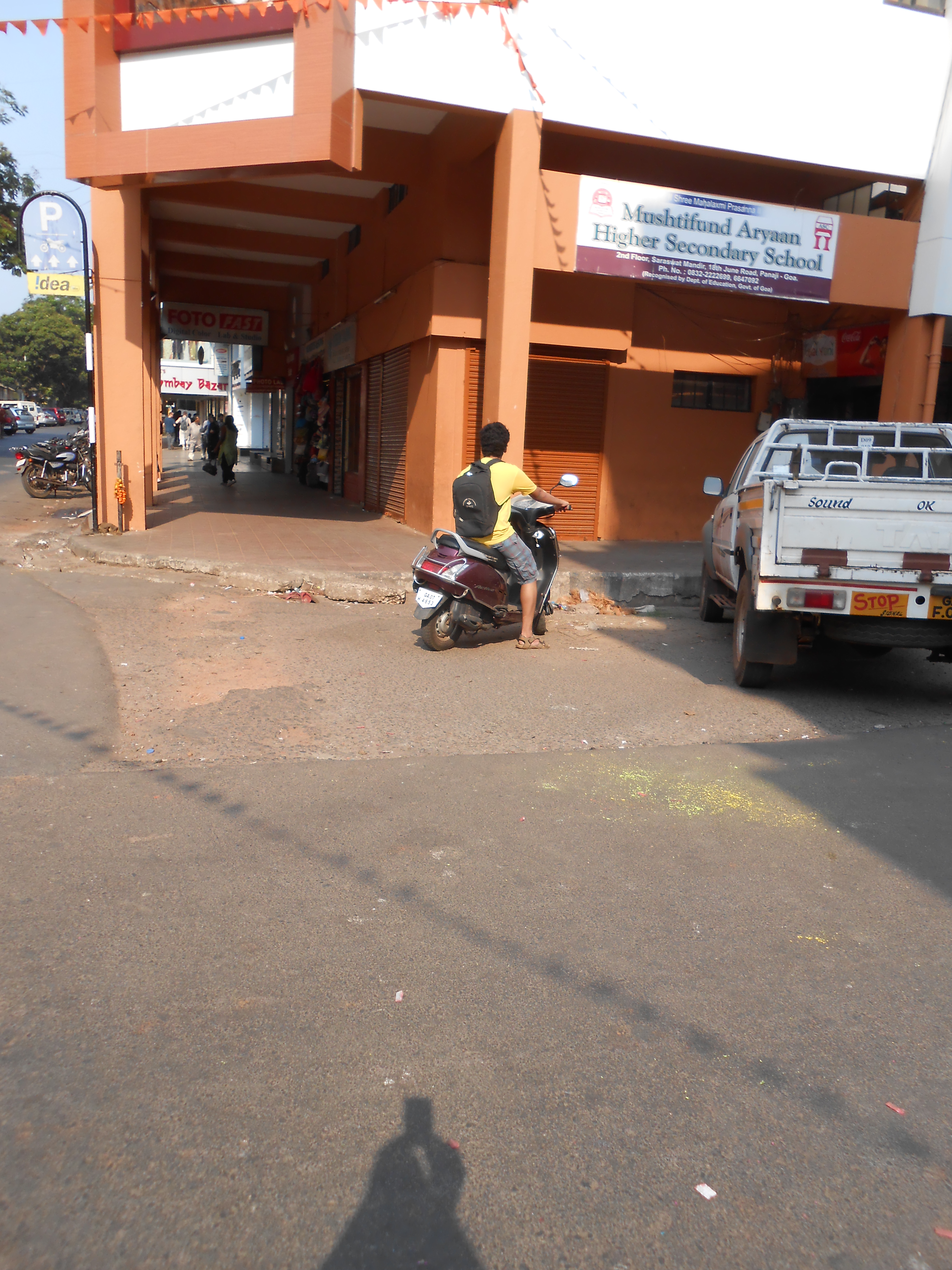 On 17th march I go to Aryan’s study circle, (any cop who wants to make some buck should station himself/herself there at the time when they start or close classes) this is located on the one way where vehicles can go towards A.B.Borkar road but not come from there to 18th June road. This 11th standard boy speeds, from the AB road, parks in front of the Aryan’s study entrance in the area earmarked for cars, when I ask him for license he says “I am not carrying one.” his excuse for driving down the one way ”there are no other vehicles” he was offended that I took him to task.