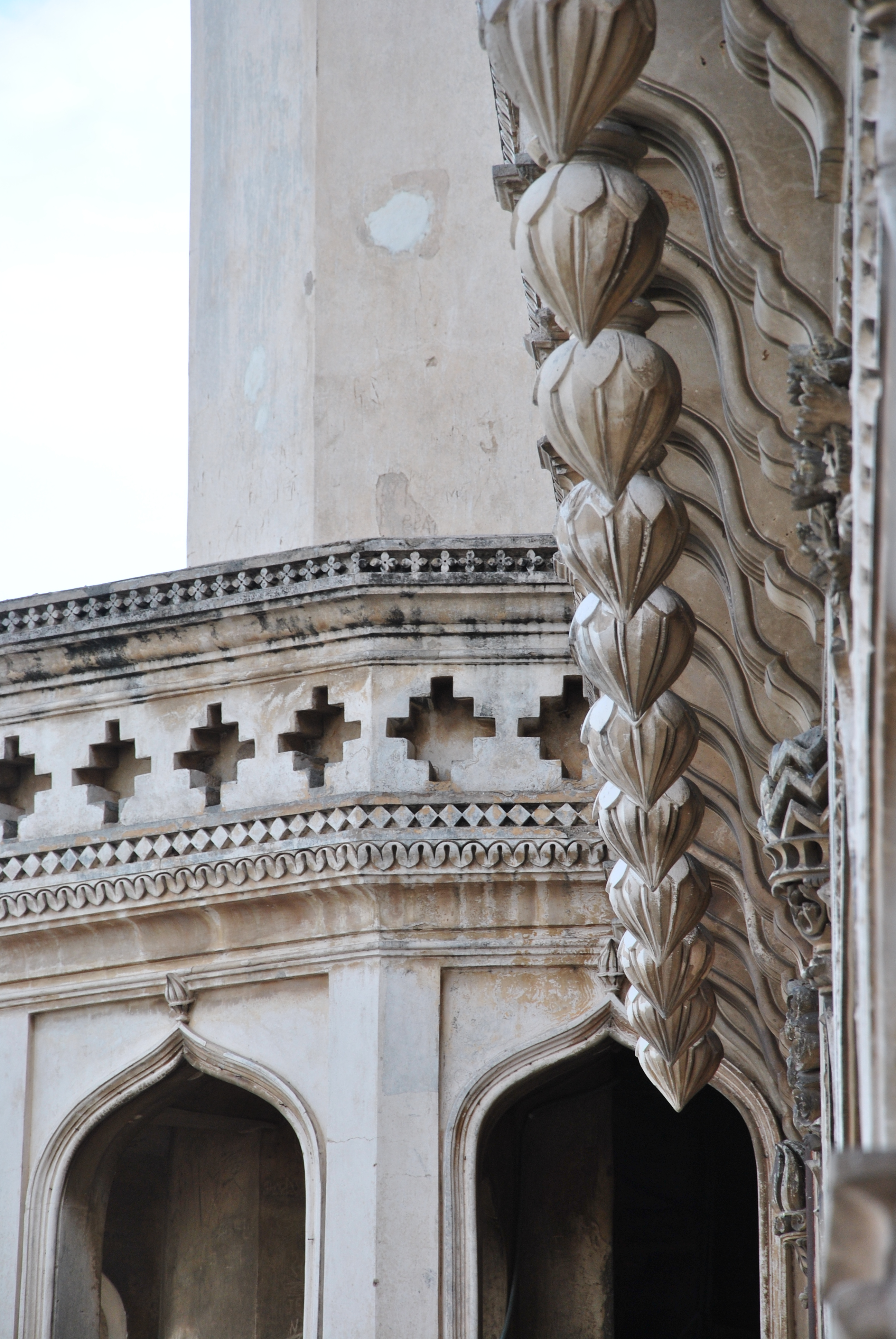 The structure has a square base of 31.95 meters on each arm, and vazi or cistern in the centre. There are 4 minaret’s that are 11 mts high and each of 3 stories. These minars are bonded by arches on the outer facade and balconies on the inner aspect. There are 149 steps leading to the top on each minarets and 12 landing in all.