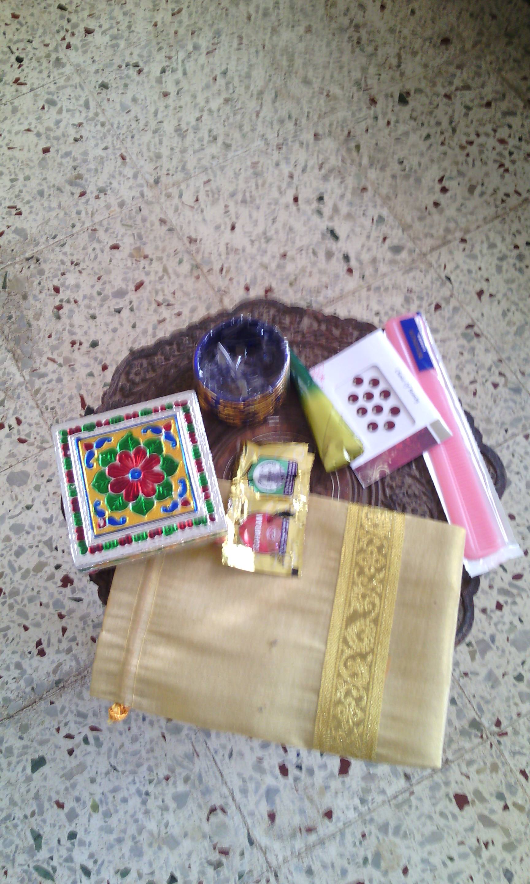 For nine days this is worshiped and Nivedyam make of different dishes are offered. The general ingredients being corn, sorghum, bajra, black gram, Bengal gram, green gram, groundnuts, sesame, wheat, rice, cashew nut, jaggery, milk.