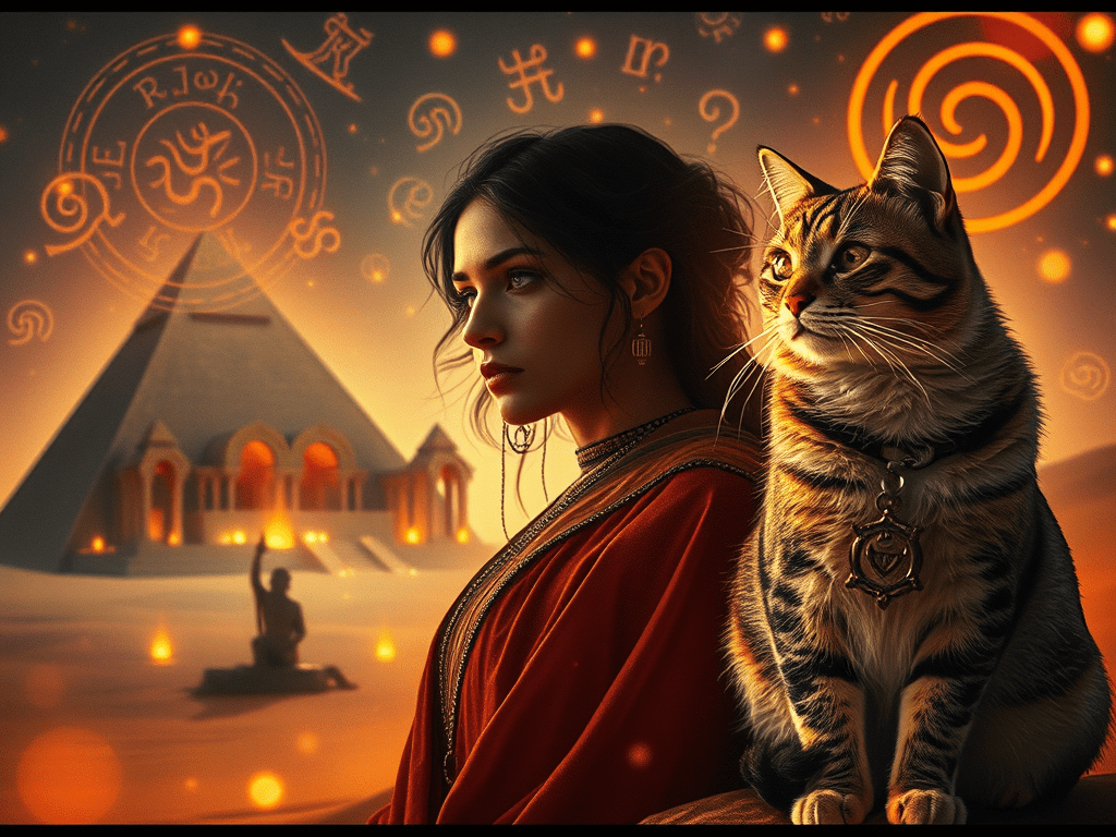 That night she dreamed. Temples rose from desert sands, their walls etched with hieroglyphs that shimmered like fire behaving suspiciously well. Nearby, Vedic altars blazed while priests in saffron robes chanted mantras with the solemn conviction of men who knew the cosmos was taking notes. Egyptian hymns braided with Sanskrit verses. Linen mingled with saffron. Entire civilizations appeared to have gathered for a quiet conference on the nature of identity.